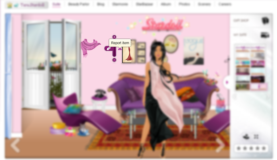 Some of you have surely noticed that we have introduced a new reporting tool Stardesign objects on the page. This new tool is used to report all StarDesign items that are offensive and inappropriate for the Stardoll page.